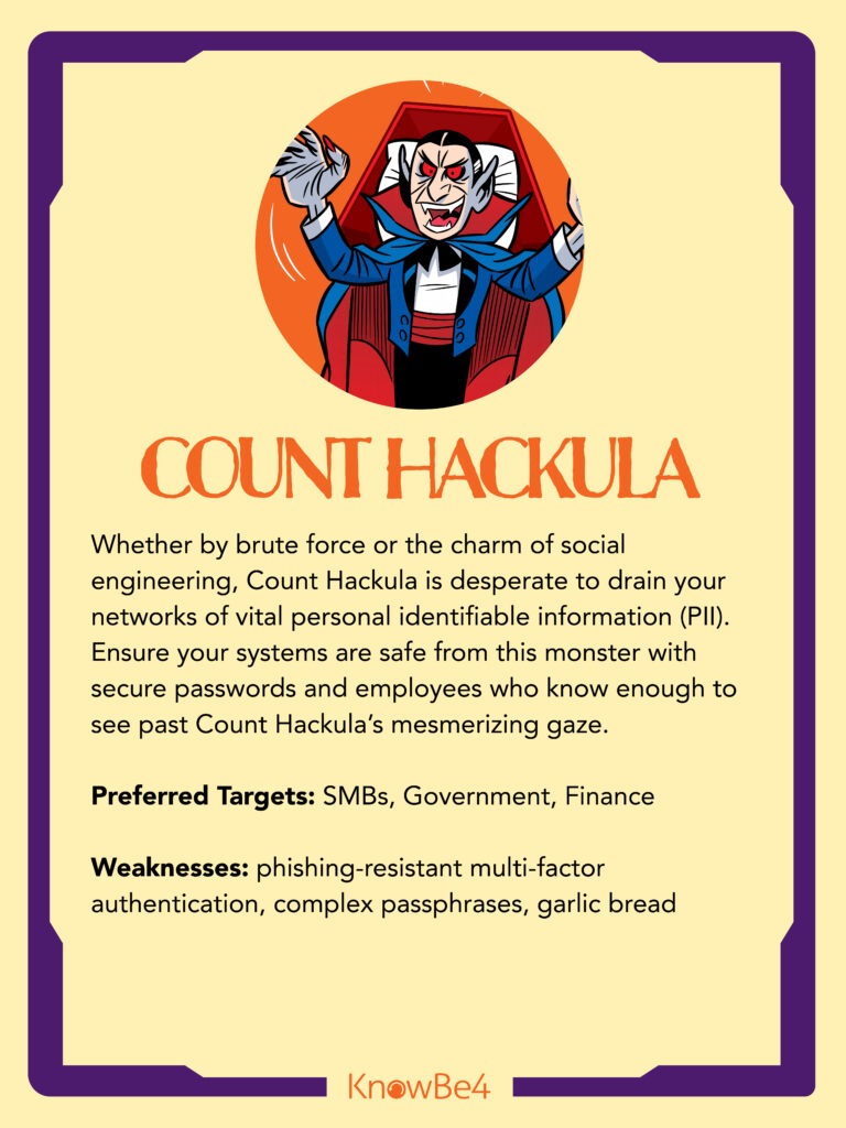 Check out these spooky Cyber Monster Cards! Each of these spooky creatures personifies a key cyberattack hackers use. Source Our Partner KnowBe4.